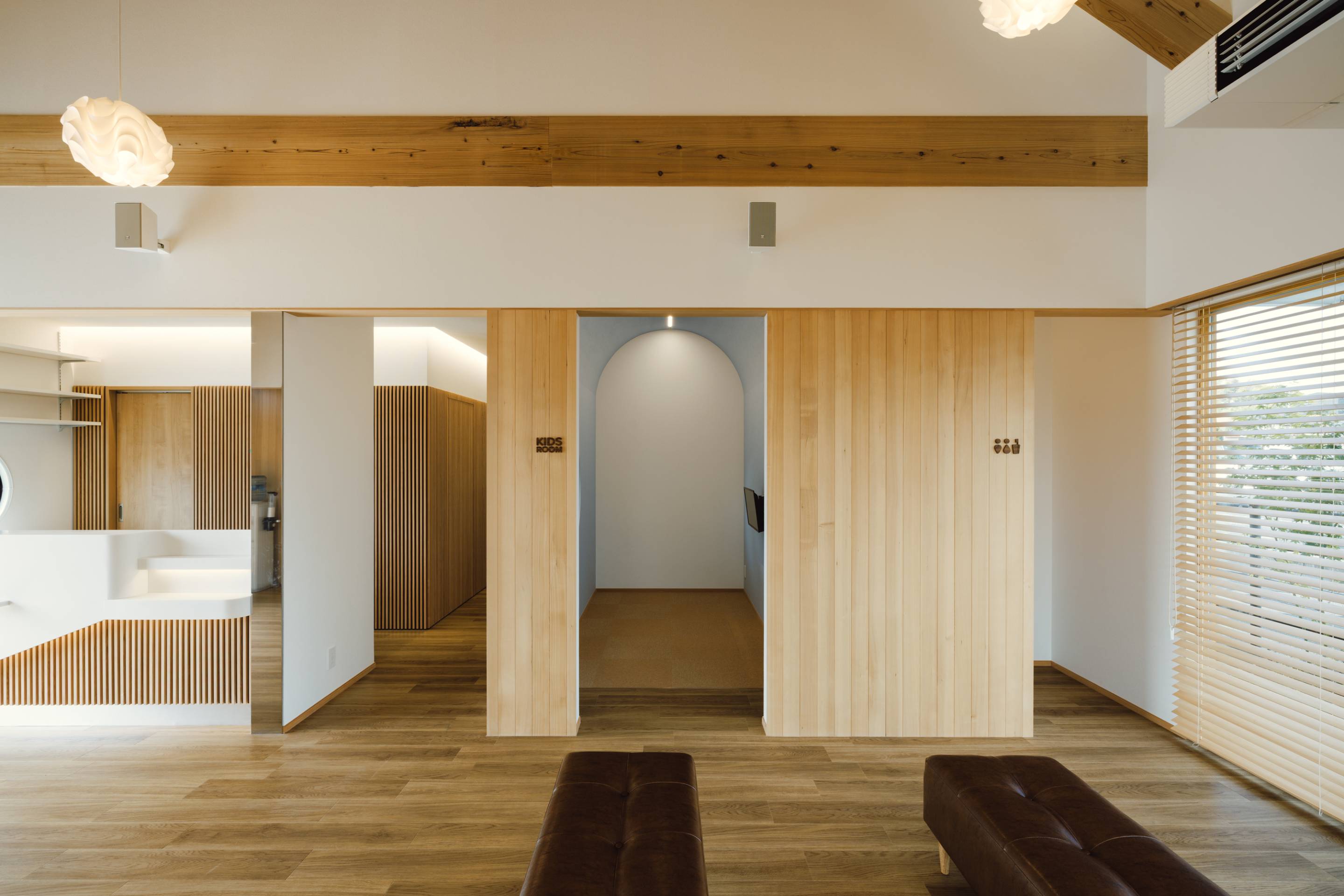 倉敷中庄に設計監理した歯科院となります。木肌を多用して優しい雰囲気と将来増床することも考慮した将来への可能性を多く秘めた歯科院になっています。