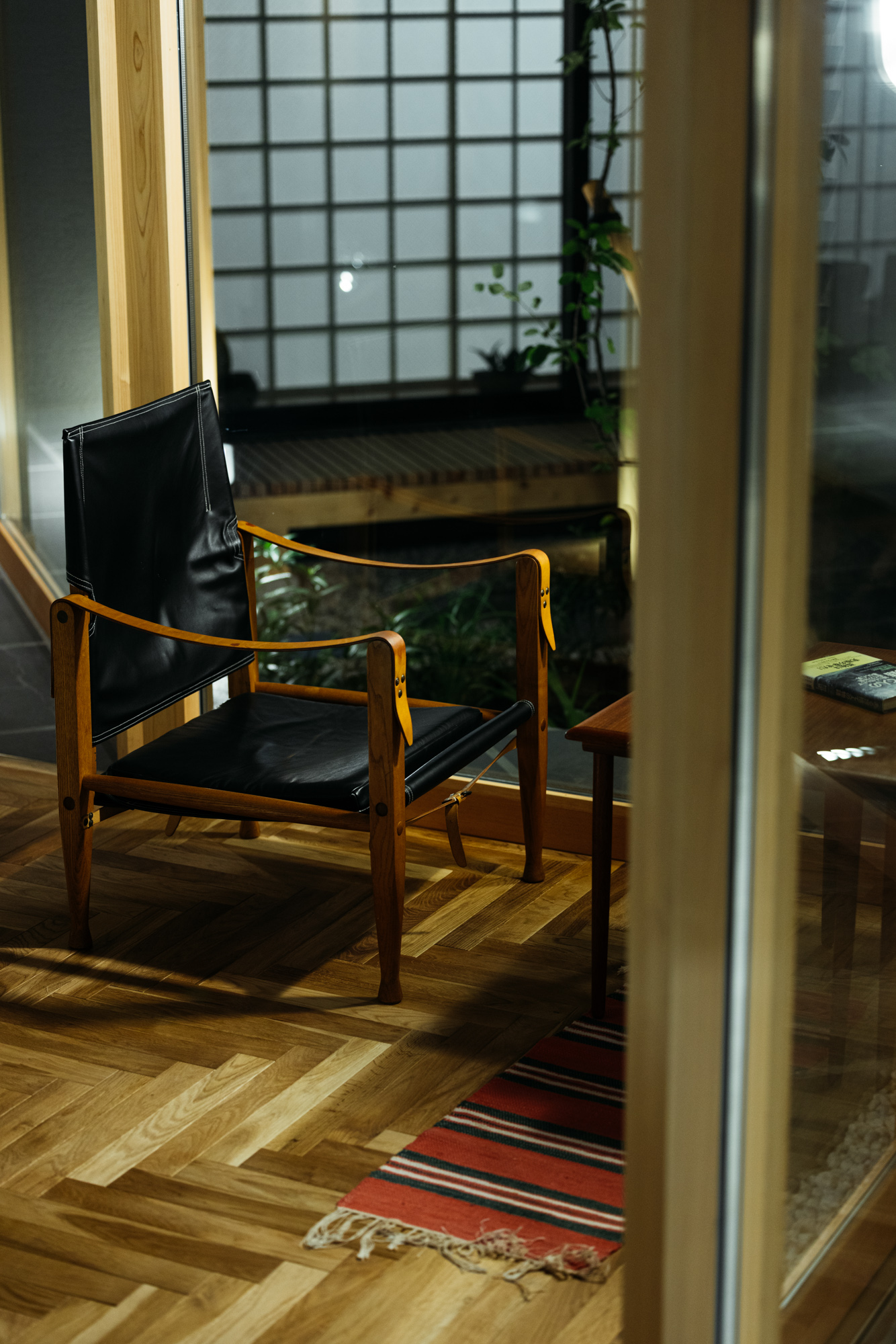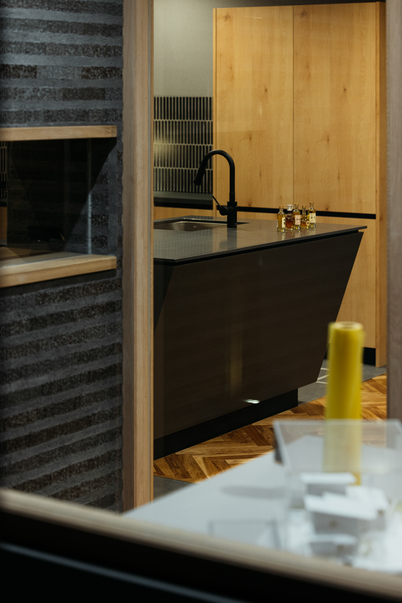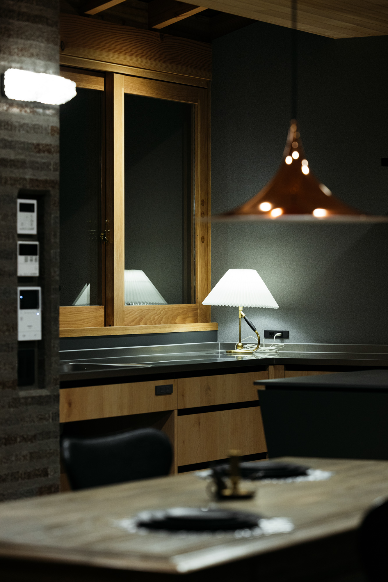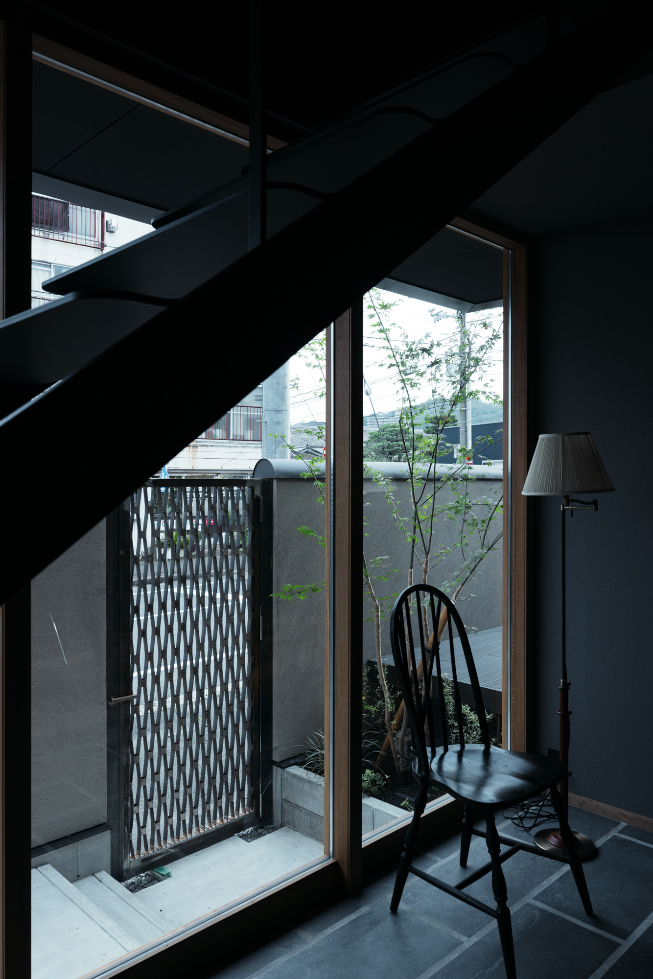 そしてキッチンから眺められる中庭はとてもい気持ちよさそうな場所。このキッチンはオーダーキッチンでインテリアに合わせてオークとグレー、ブラックで色合いをまとめてみました。
