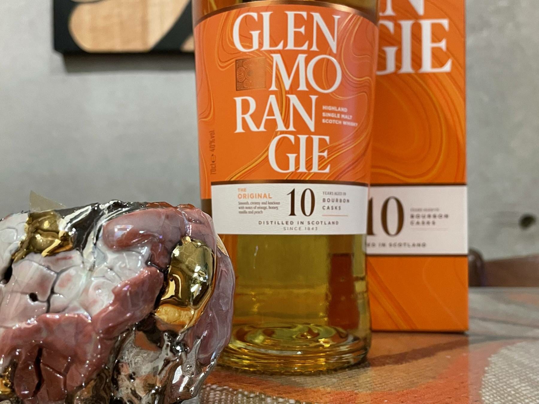 「葉音の暮らし」のお客様から10周年のお祝いにと頂いたグレンモーレンジのシングルモルトウィスキー。今宵は備前陶芸作家市川透さん作のお猪口でロックを嗜みさせていただきました。北ハイランドで同じ10年前に樽に仕込まれた味は柑橘系とバニラの風味で奥深い味わい・・・。さぁがんばろ~