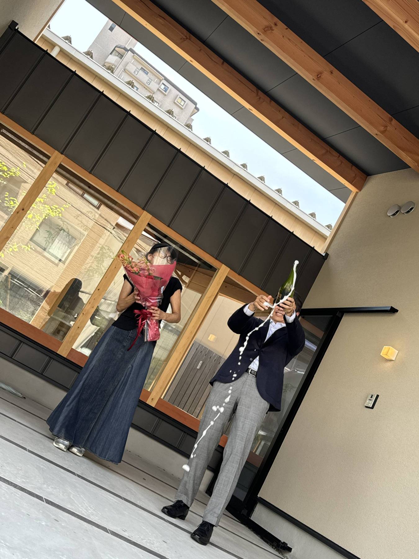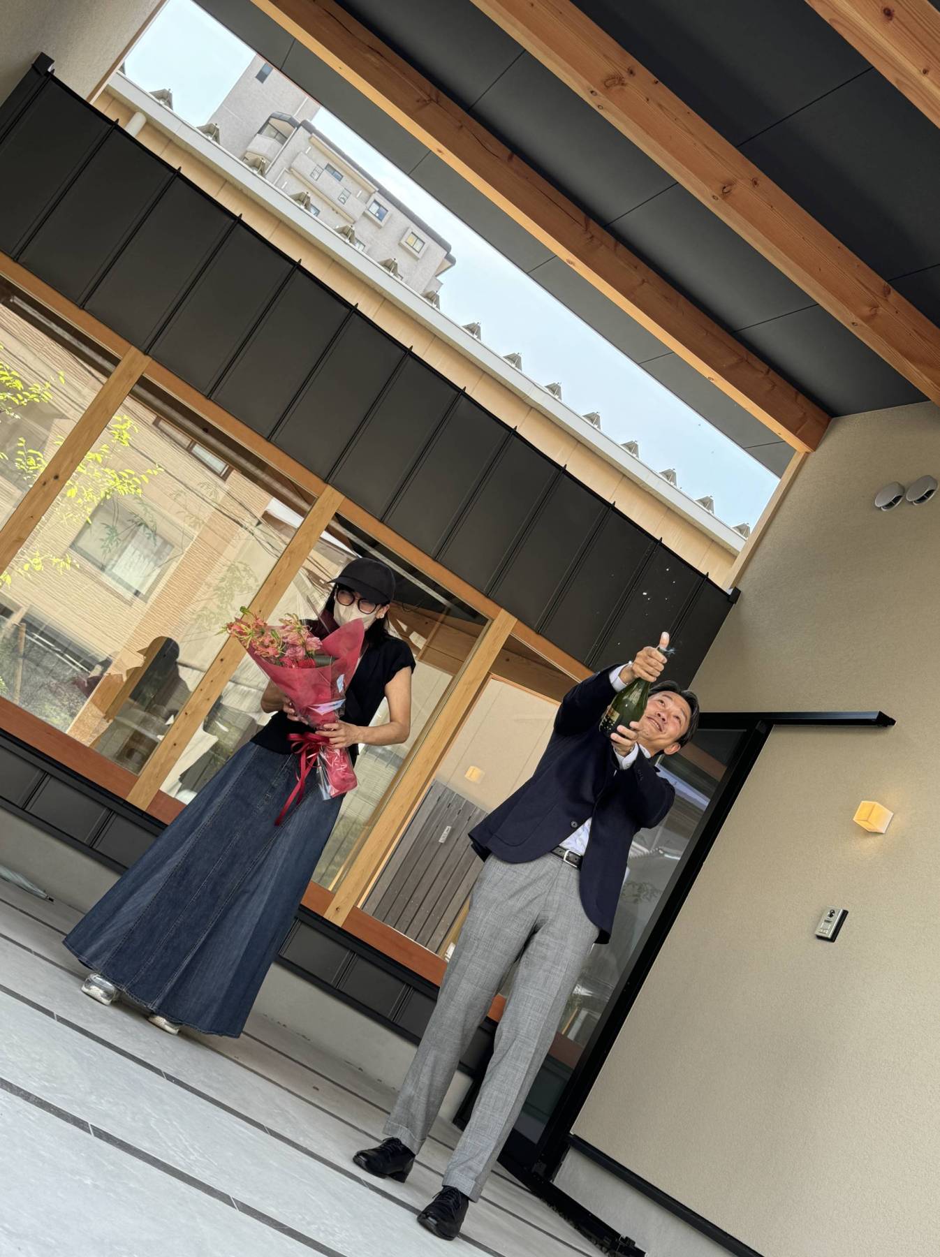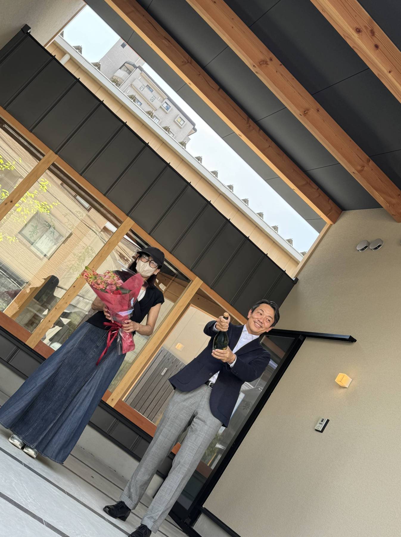 母の日前日、広島西区で地鎮祭を執り行う事が出来ました▲今回は住み続けながら2期工事に分けて建替えを行う計画です。先ずは宅内引越しをしてもらいからの一部解体→1期工事着手。1期が出来たらもう一度宅内引越しをしてもらい解体からの2期工事着手。最後にジョイントとなかなかな精度と難易度の痺れる現場スタートですがかなり手ごたえのある良い住まいが完成しそうなので楽しみなprojectとなっています▲地鎮祭はあいにく雨模様でしたが、珍しく仏式の地鎮祭…。しばらくすると聞き覚えのあるお経!?あれれ?もしかして…我が家と同じ宗派のようで、一年前他界した母の事を思い出したりと雨音のBGMが心地よく感じたひと時でした▲奉献酒には福岡県の「庭のうぐいす」を。一年後完成したら庭の緑にうぐいすなど鳥の鳴き声が聞こえてくるようにと願いを込めて選ばせていただきました。是非冷やしてご賞味ください。