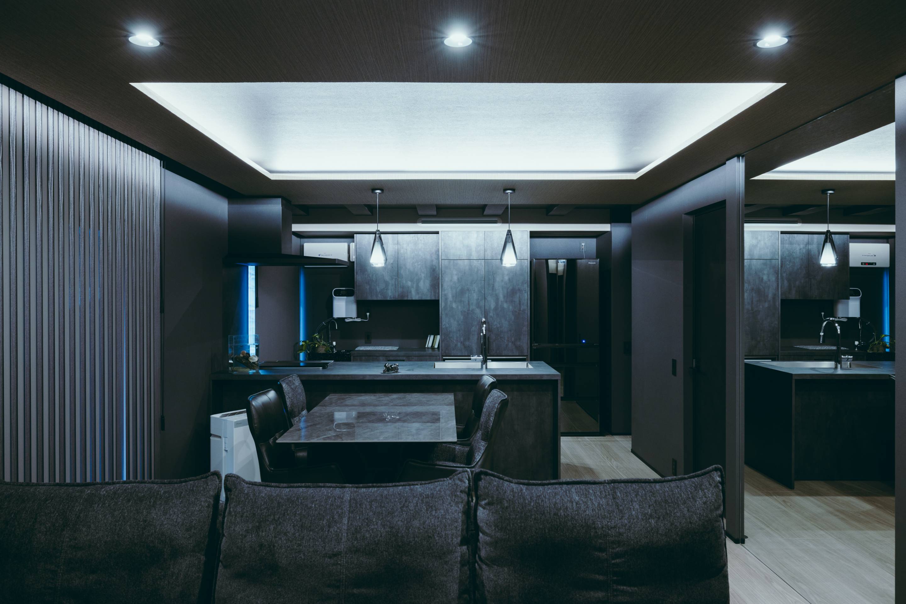 一軒家の1階部分のみのリノベーションになりますが、ガラッと変えてやろう!どんどん手が進み間接照明や天井の複雑な形状。。。実は途中予算も心配になり設計変更しながら予算調整しかかったこともありました。・・・でも声をかけてくれたお客様を驚かせてみたい。との一心で社内スタッフと「大丈夫!もともとのデザインでやりましょう」と声を掛け合い完成までたどり着くことが出来ました。自分の首を絞めるような過度な設計は良くないかもしれませんが、ギリギリのところを攻めて着地するチャレンジも必要かなと思っています。そんな思いでホテルライク以上の仕上がりとなっています。1000万という予算でリノベーションを考えているご家族も多いかと思います。これを機に是非ご予約ご来場ください。設計時現場時のお話もさせていただきます。