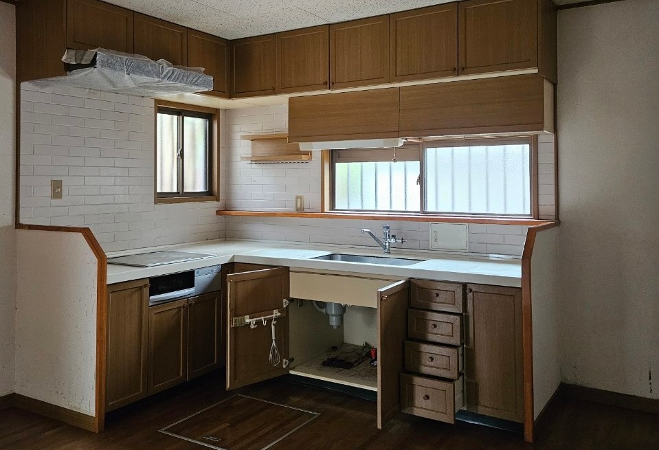 □新規設備:ユニットバス・便器・キッチン・バック収納・照明器具・エアコン配管(本体はお客様ご用意)
