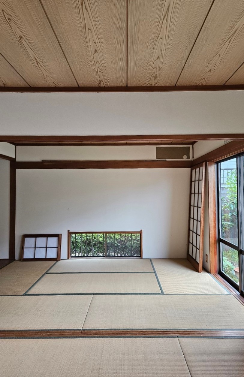 よく見る続き間のタタミ部屋です。築年数は古いもののとても綺麗に使われていますが広々とワンルームのLDKにしていきます。