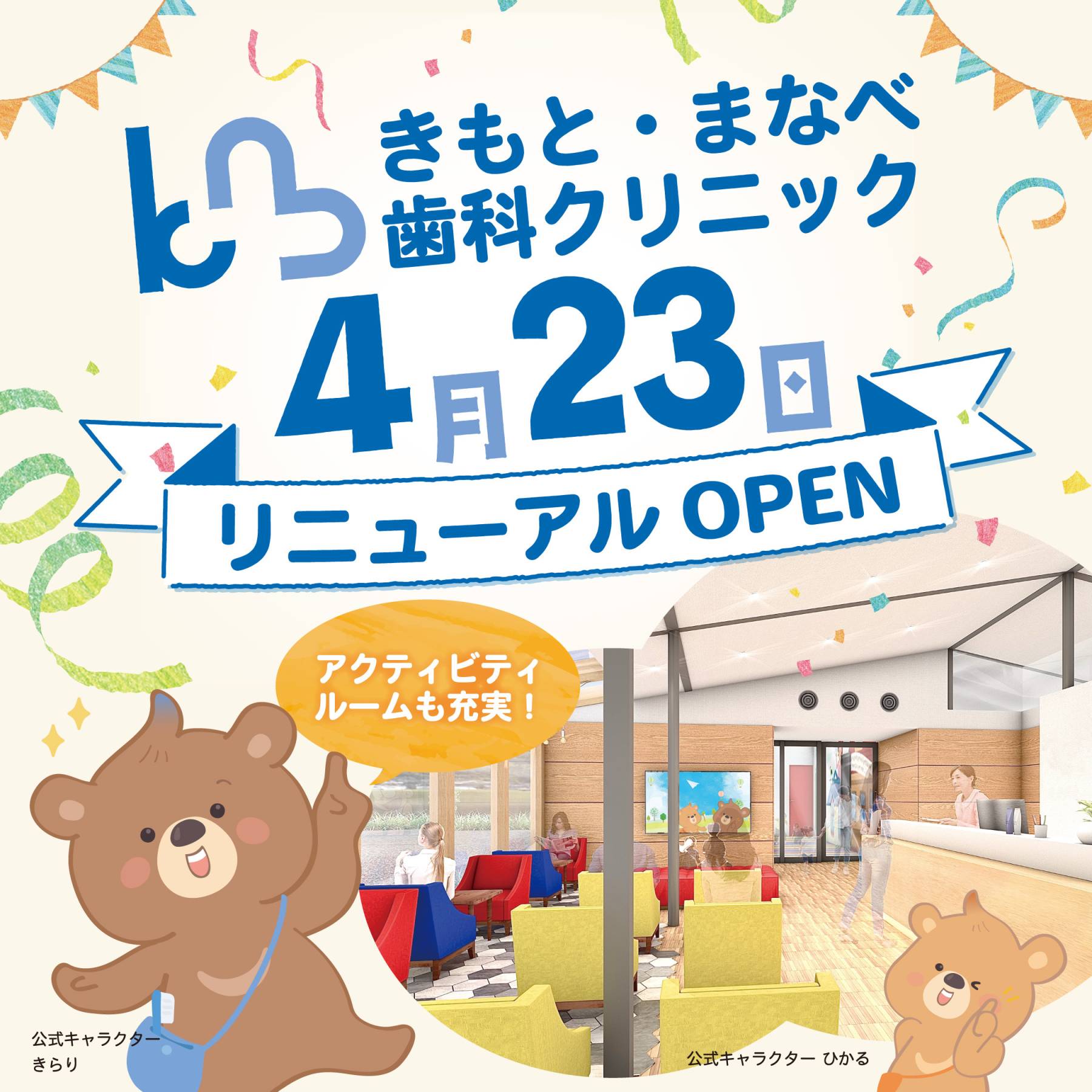 reborn計画の合言葉は「これからの未来を支える子供たちがより健康に育つためにこれからも挑戦し続けて行こう!」▲5歳からはじめる歯を抜かない子供のための矯正治療マイオブレースを行うため建築でお手伝いをさせてもらっています。今日は壁紙の色決定!青に黄色、オレンジに紫まで・・・色とりどりに張り替えられる壁は子供たちが楽しく喜んでもらえるようにとドクターの強いご希望です。確かに子供のころ、おふくろに連れられバスに揺れながら行かされた歯医者さんは怖かった記憶が・・・。明るく楽しそうな歯医者さんだったら喜んで行きますね▲矯正についての詳しい内容はこちらからご覧ください→→マイオブレース矯正 岡山県倉敷市 きもとまなべ歯科クリニック (kimoto-myobrace.net)