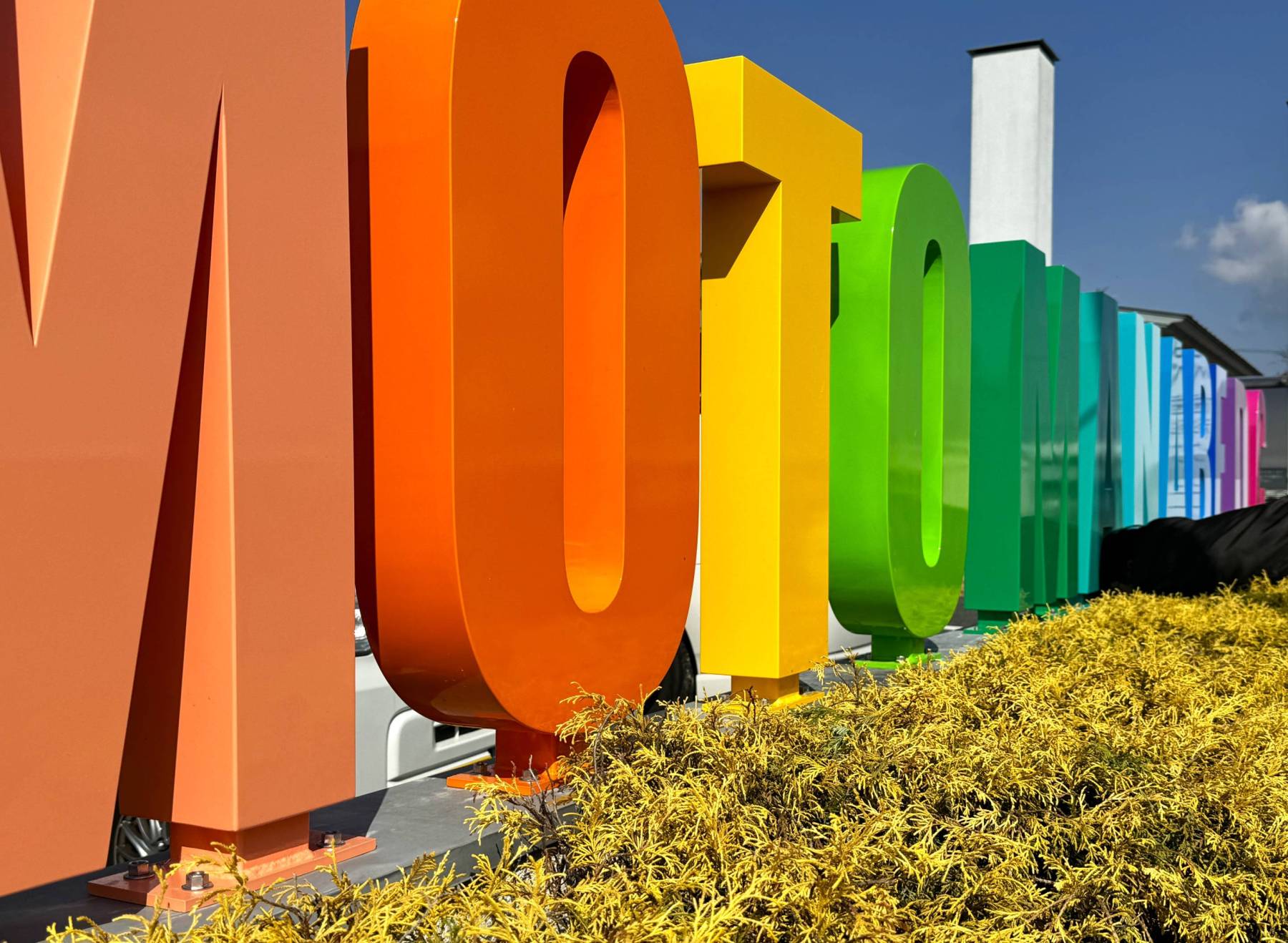 さぁ面白くなってきたrebornプロジェクト。そろそろ大詰めに入りかけています。先ずはサイン計画も思い切ってアメリカンなインパクトに!15色を使ってグラデーションのサイン計画は畑向こうの通りからも見えるように・・・!楽しくなるようなそんなサイン提案です。