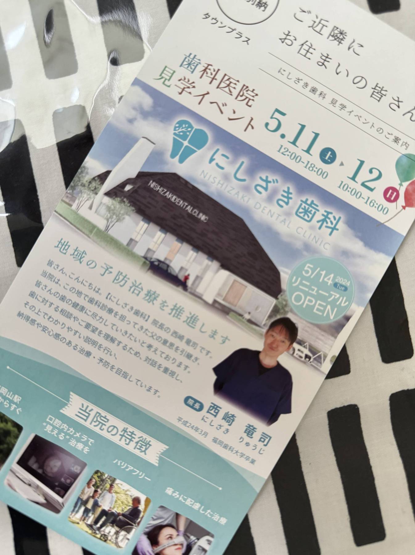 Newsです。弊社設計のにしざき歯科院の内覧会が今週土日5/11+5/12の二日間開催されます。JR東岡山駅目の前に完成しましたので是非お立ち寄りください。ちょっと田舎の北欧をイメージした優しい歯医者さんとなっています。詳しくはこちらからご覧ください↓