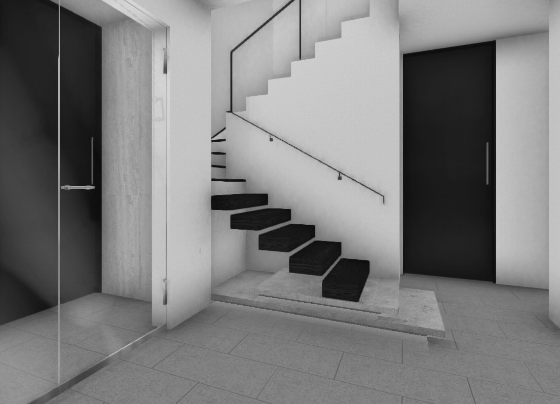 玄関ホールは唯一共有する場所なので力が入りますね。ガラス扉に跳ねだし階段、間接照明などデザイン要素を取り入れて設計していきます。・・・でも予算が頭を横切り葛藤を繰り返している時期。設計を進めていくのに道は2つ。一つは予算内で収まるように進めていく。これは一番王道な進め方でほとんどの建築会社で選択している方法ですが、その反面、良いと思っても手戻りが無いようそれ以上の提案はせずにブレーキを踏んでしまいその後提案が出てくることはないでしょう。二つ目は良いと思っている案やご希望をマックスで設計して、正式な見積もりが出てから減額するか予算用意をするか考える方法。これは、設計側にも手戻りのリスクがありますが一番賢い方法かもしれません。なぜか・・・?それはまた次回機会があれば理由を書きたいと思います。