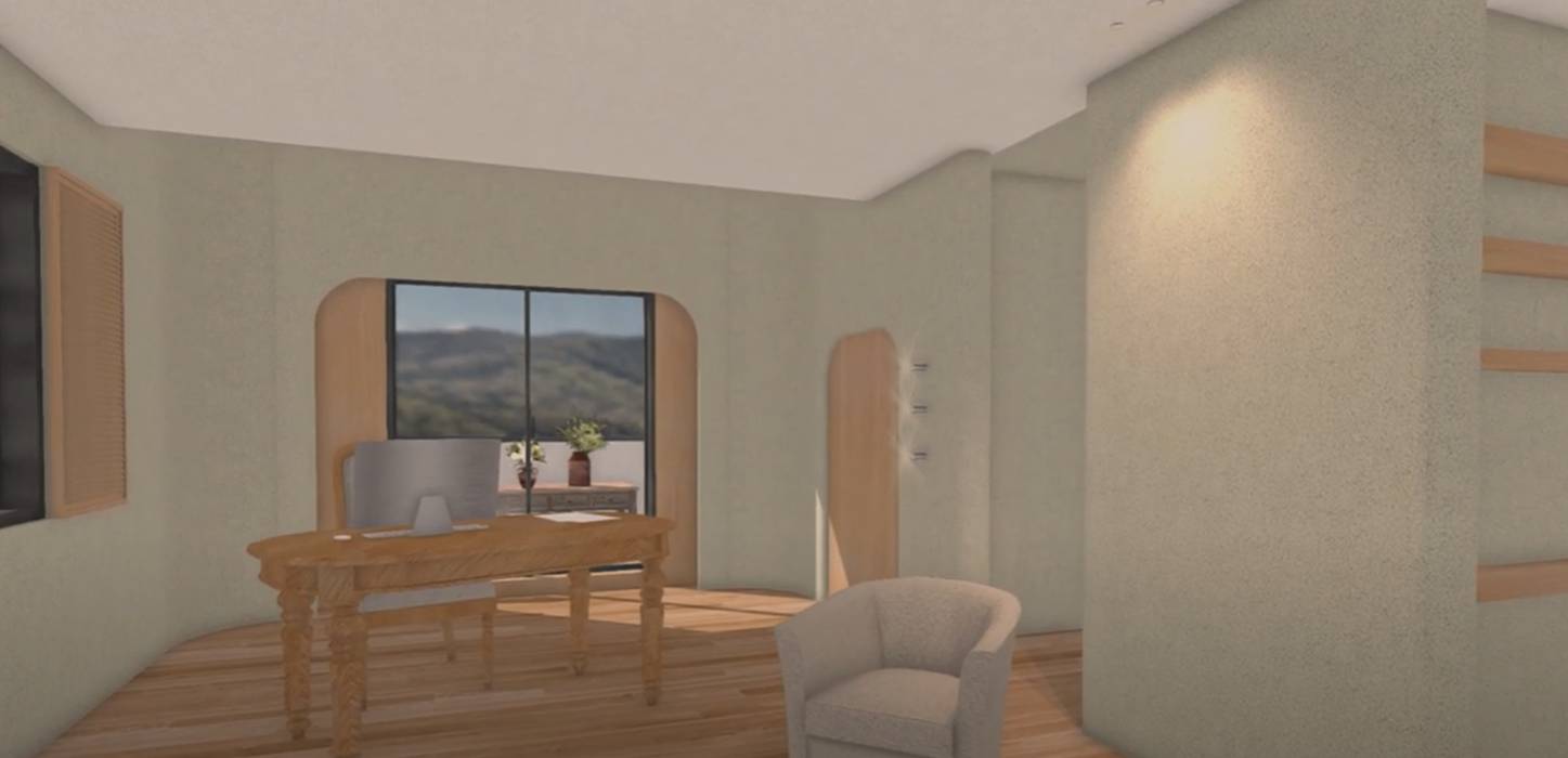 こんな雰囲気にリノベしていきます。壁の一部に曲線を取り入れて柔らかさと光が流れる道を創ります。まだまだ設計したいところをぐっとこらえて一歩手前で止めるという難しさを実現しています。ついついやりすぎてしまって意外と難しいさじ加減です。完成予想図では表現しにくいですが塗り壁で仕上げることによってより陰影が優しく心地よい空間になります。