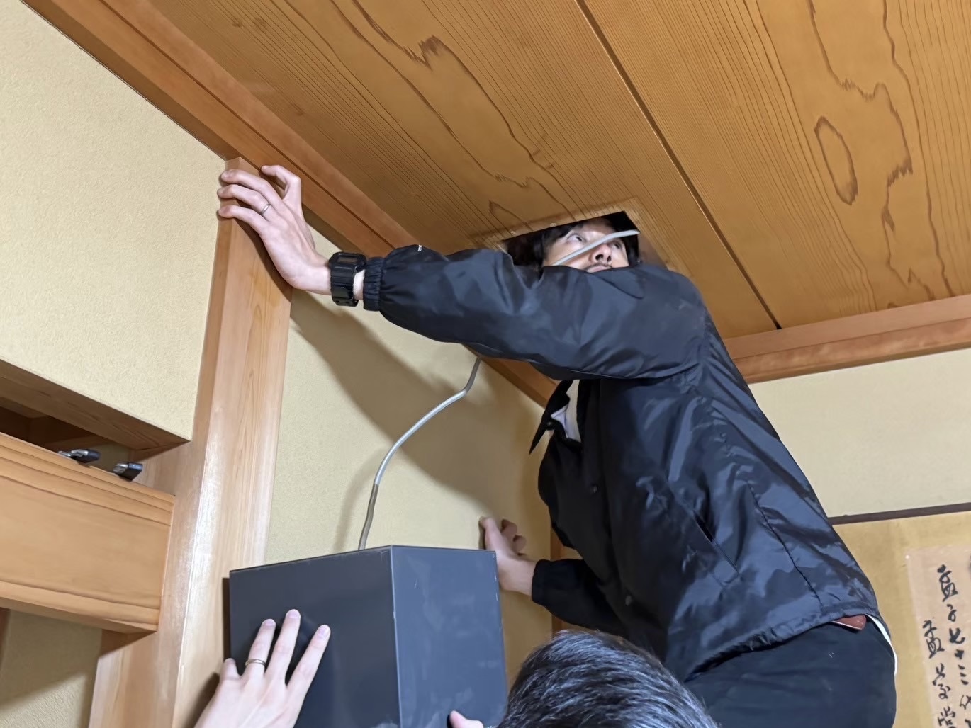 今回ご縁をいただいた新プロジェクトは御津町での大型リノベーションとなります。プランが固まったらいよいよ本格的に現地調査に入ります…。配線に絡まりながら…。