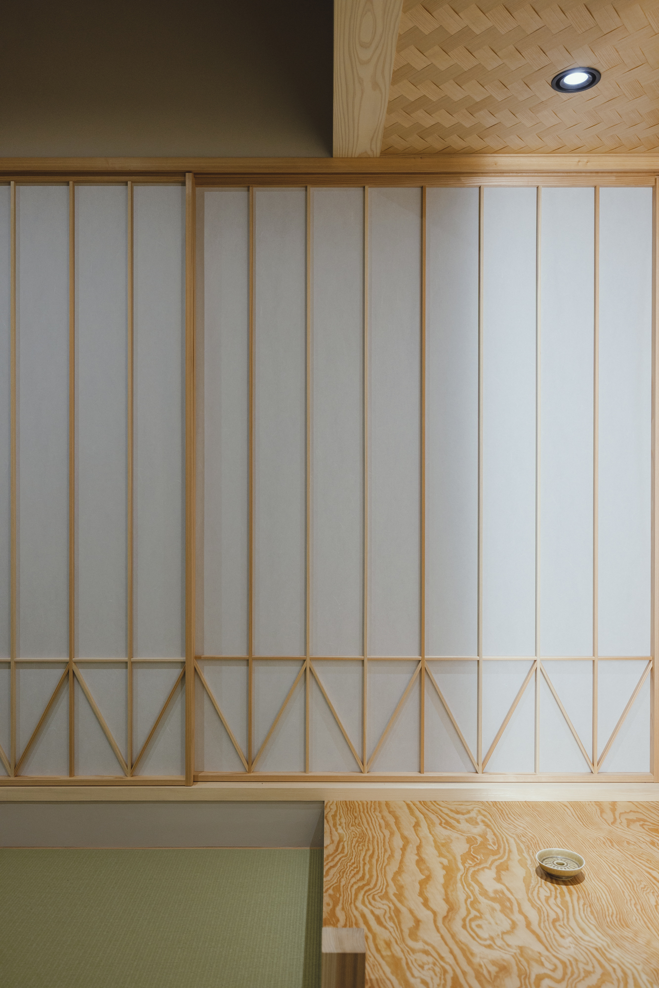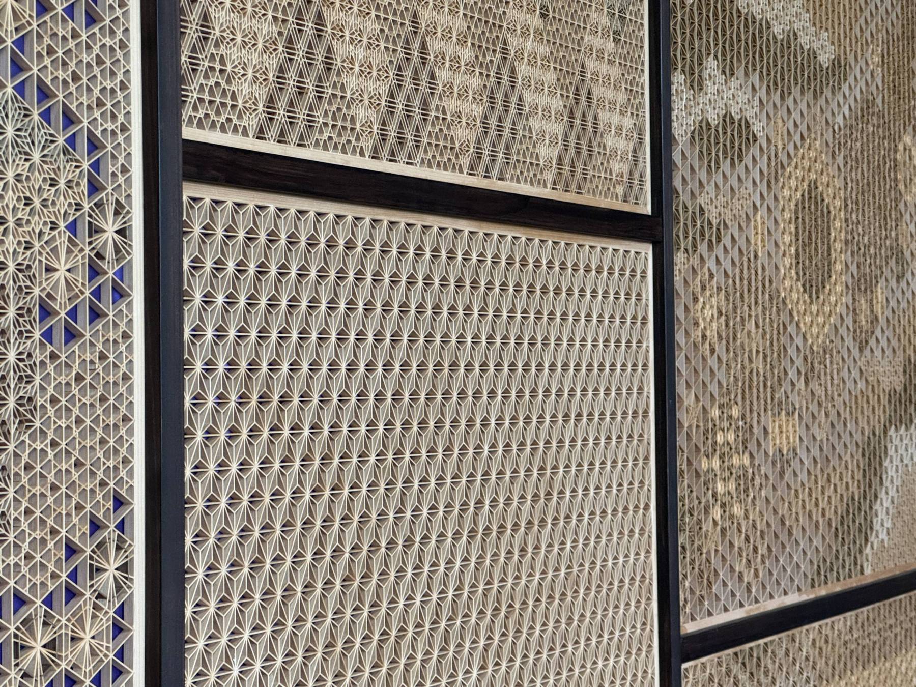 設計UPまじかの大型リノベーション「YOSAKOI」は組子を一部取り入れた計画です。今年6月NHK総合にて全国植樹祭岡山大会の様子が放映された背面に映っていた組子は記憶に新しいですね。実際真庭の佐田建美さんへ実物を見に行ってきました。組子といってもいろんな種類のデザインがあり恥ずかしながら間近で見るのは初めて‥‥。素晴らしい技術の詰め合わせです!