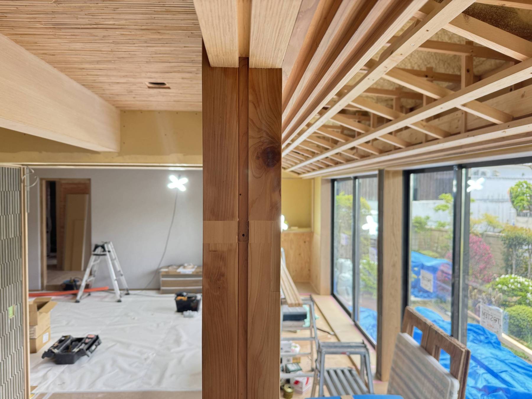 こんな雰囲気に和室がLDKに変わっていきます。今回は全体的に落ち着いた和モダンの雰囲気にまとめてみようと思います。突き当りの障子を開放すれば生前おじいさまが大切にされていた和庭園を眺めることができ仕掛けになっています。